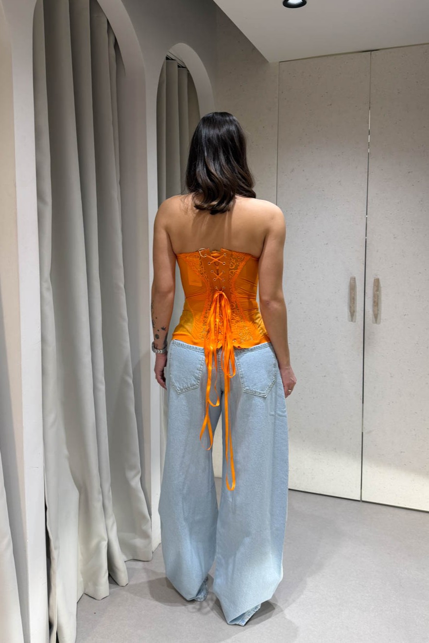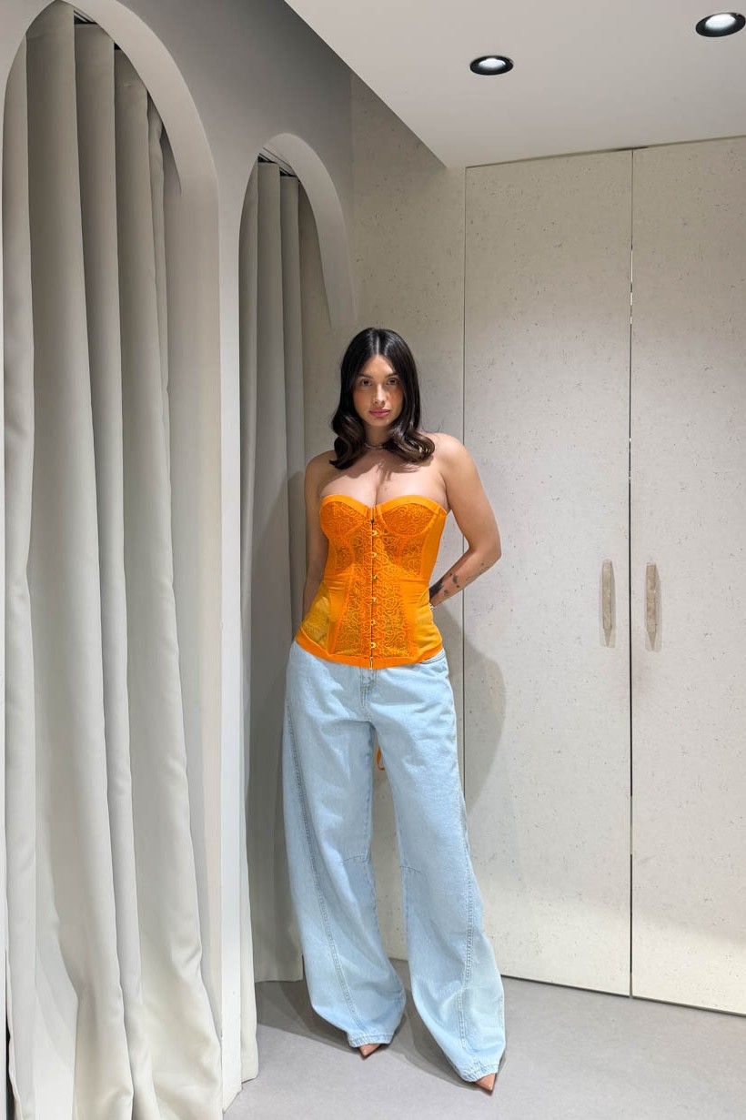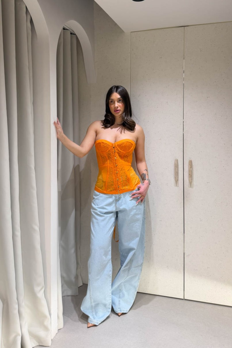 Κορσές δαντελένιος κόκκινος , διαθέτει κορδόνια στο πίσω μέρος για να σφύγγει και κόπιτσες στο μπροστινό μέρος για να κλείνει.