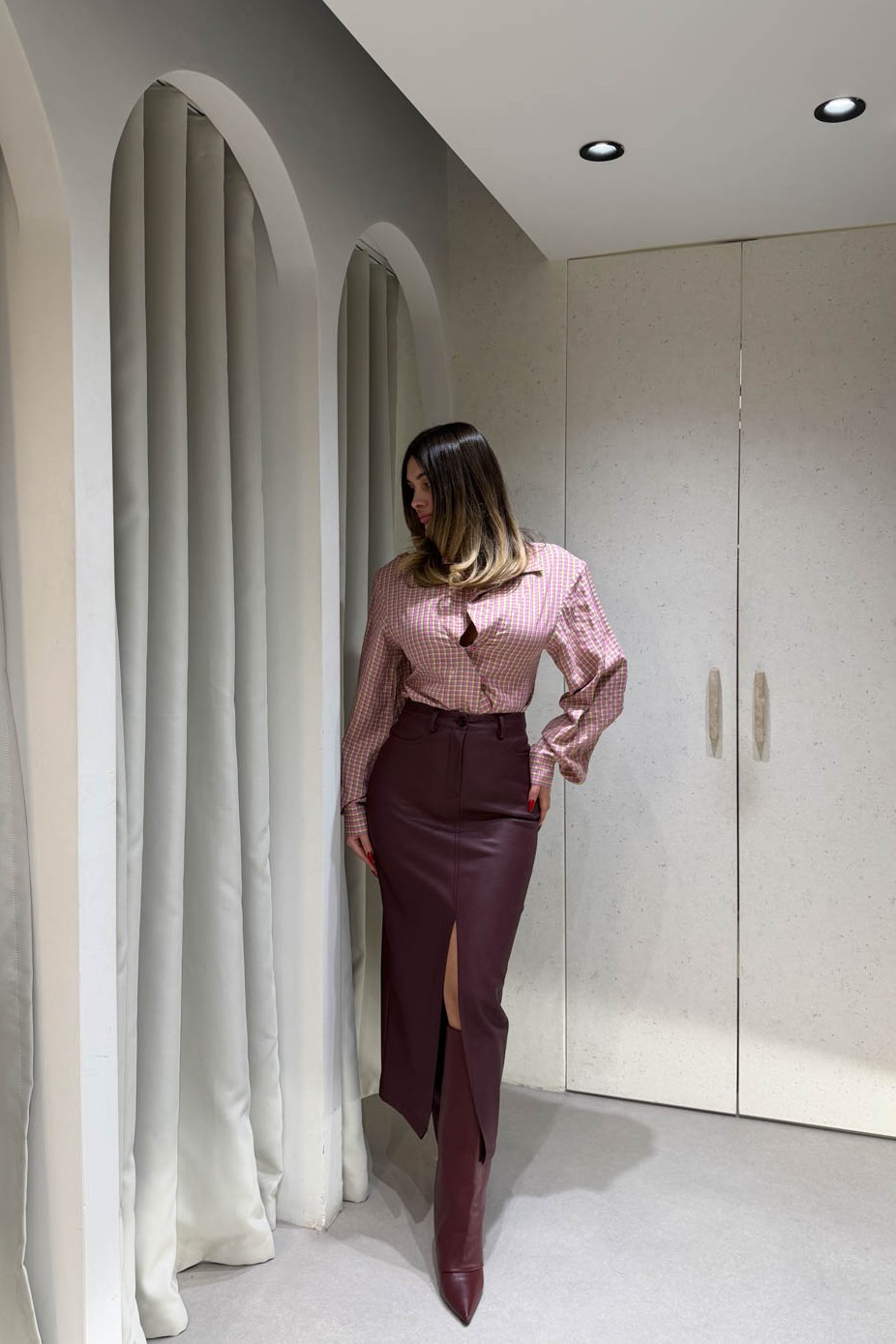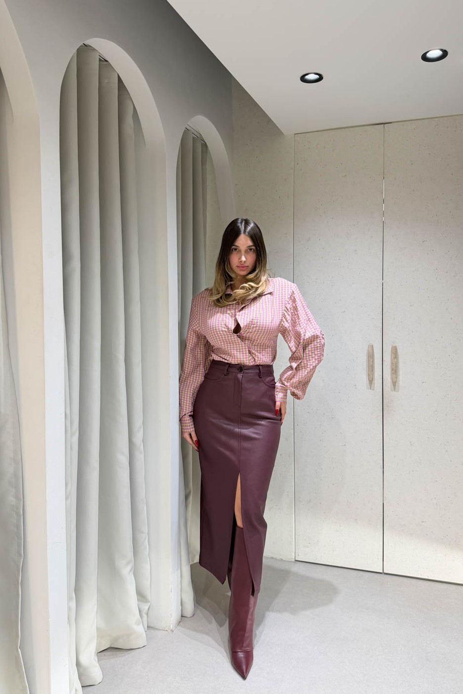 Φούστα Midi Δερματίνη με Άνοιγμα