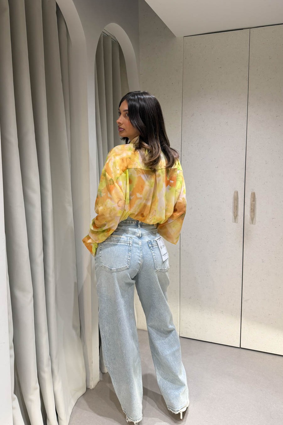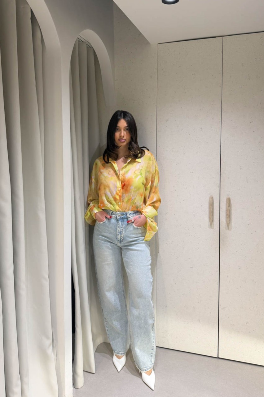Jean baggy μπλε ίσιο διαθέτει τσέπες και κλείνει στο μπροστινό μέρος με κουμπί