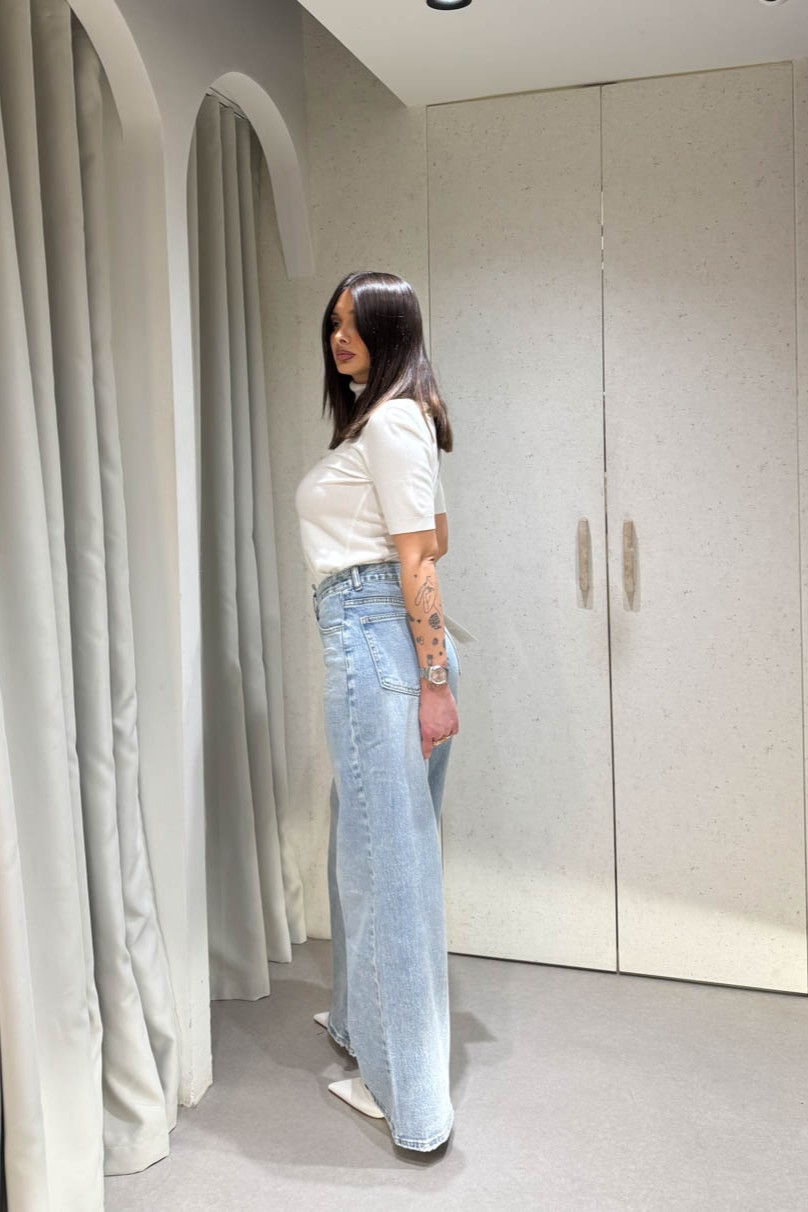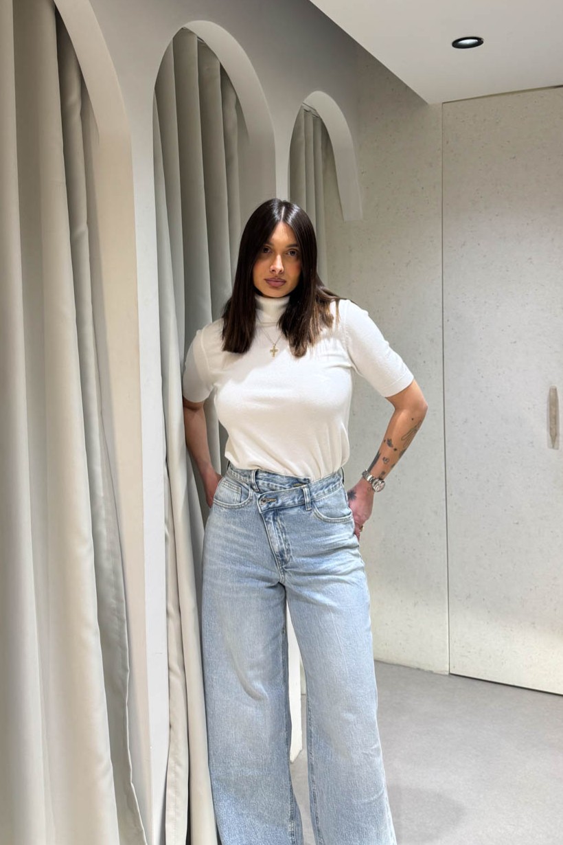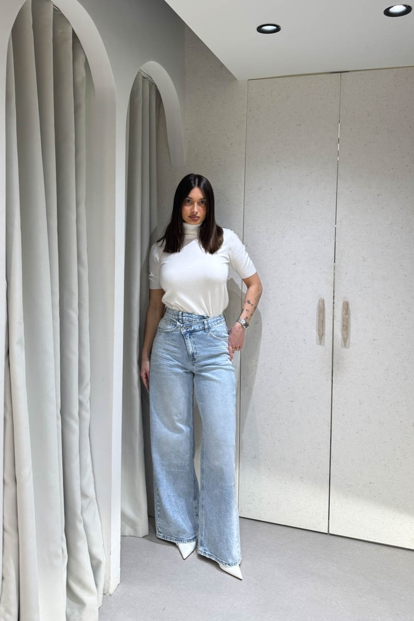 Jean baggy ανοιχτόχρωμο με πλάγιο κούμπωμα στο μπροστινό μέρος.
