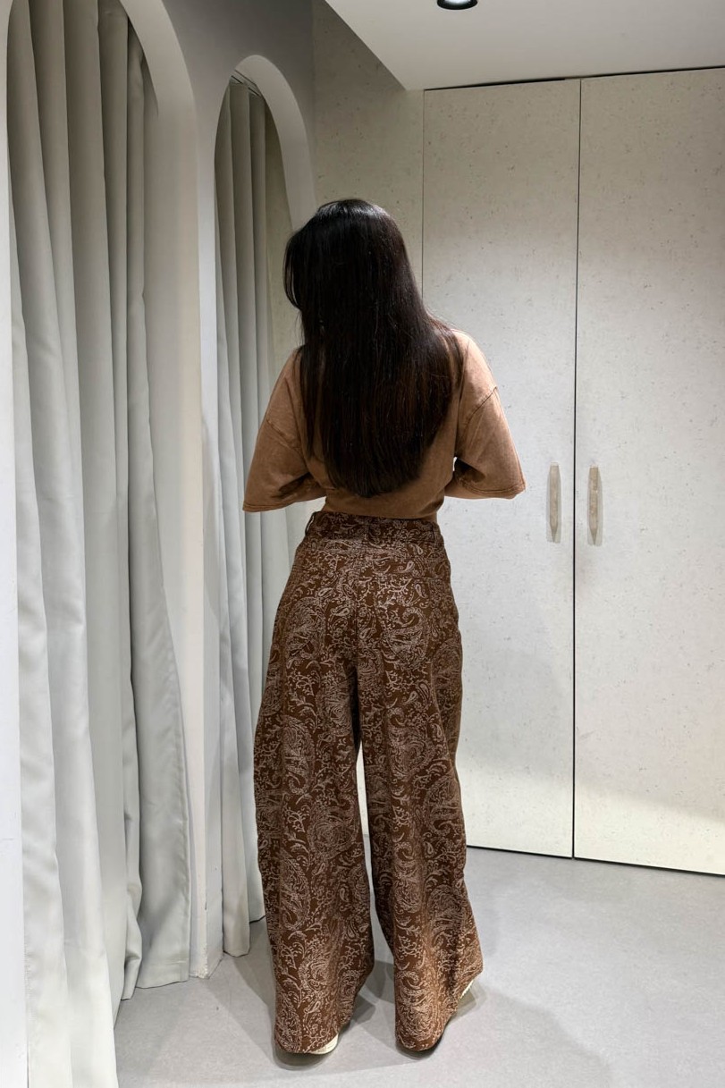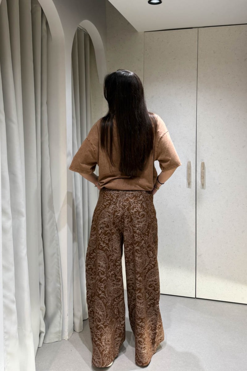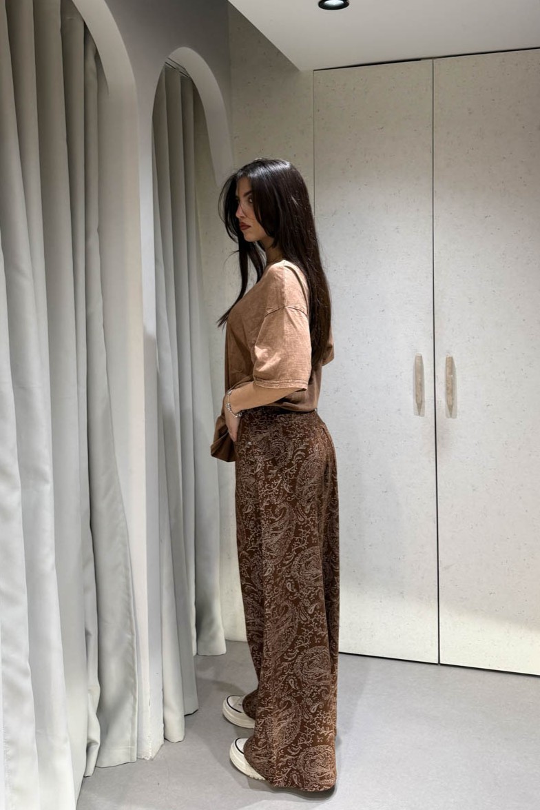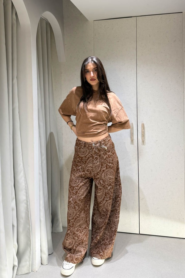 Jean με μπεζ σχέδια διαθέτει ίσια γραμμή , τσέπες και κλείνει στο μπροστινό μέρος με κουμπί