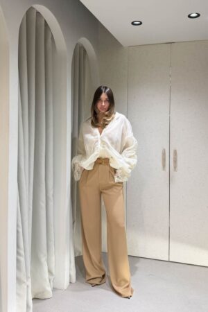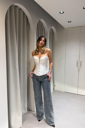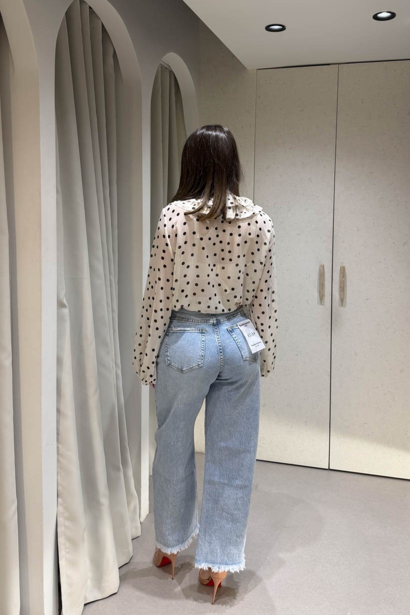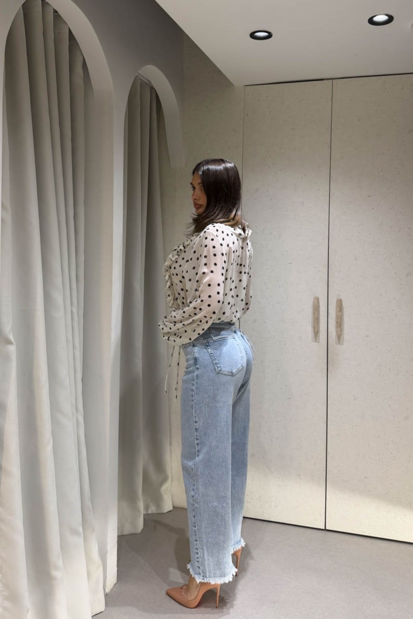 Jean ίσιο με ξέφτια διαθέτει τσέπες και κλείνει στο μπροστινό μέρος με κουμπί