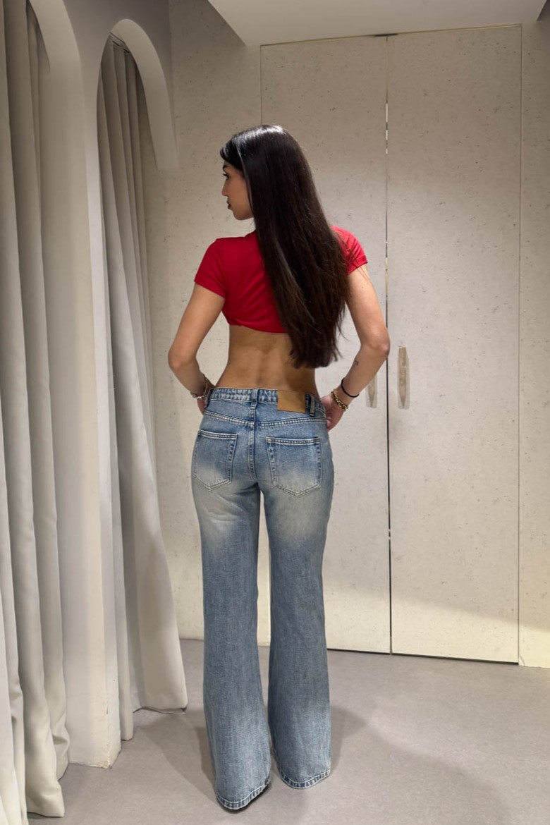 Jean χαμηλόμεσο καμπάνα μακρυά διαθέυει τσέπες