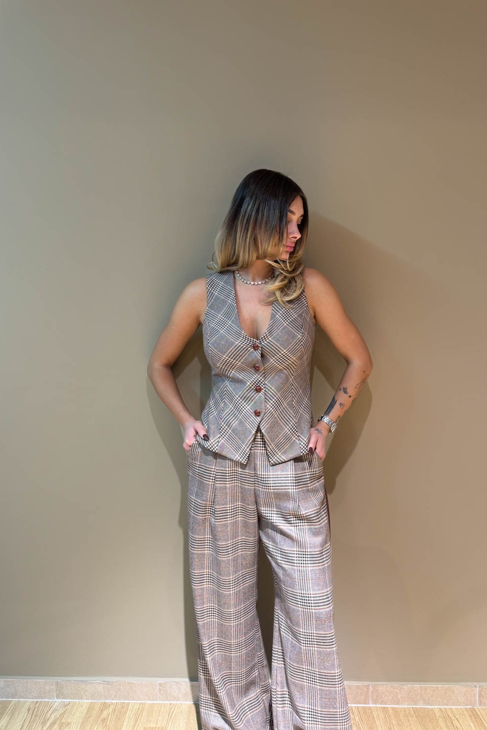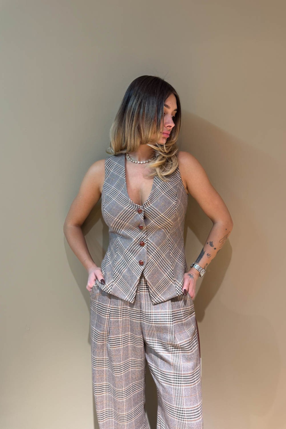 Καρό γιλέκο αμάνικο που κλείνει στο μπροστινό μέρος με κουμπιά