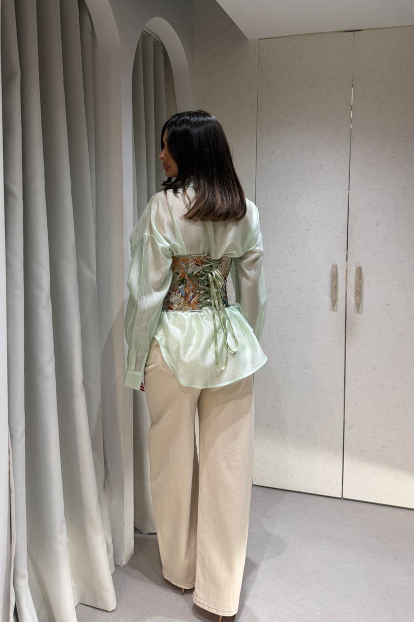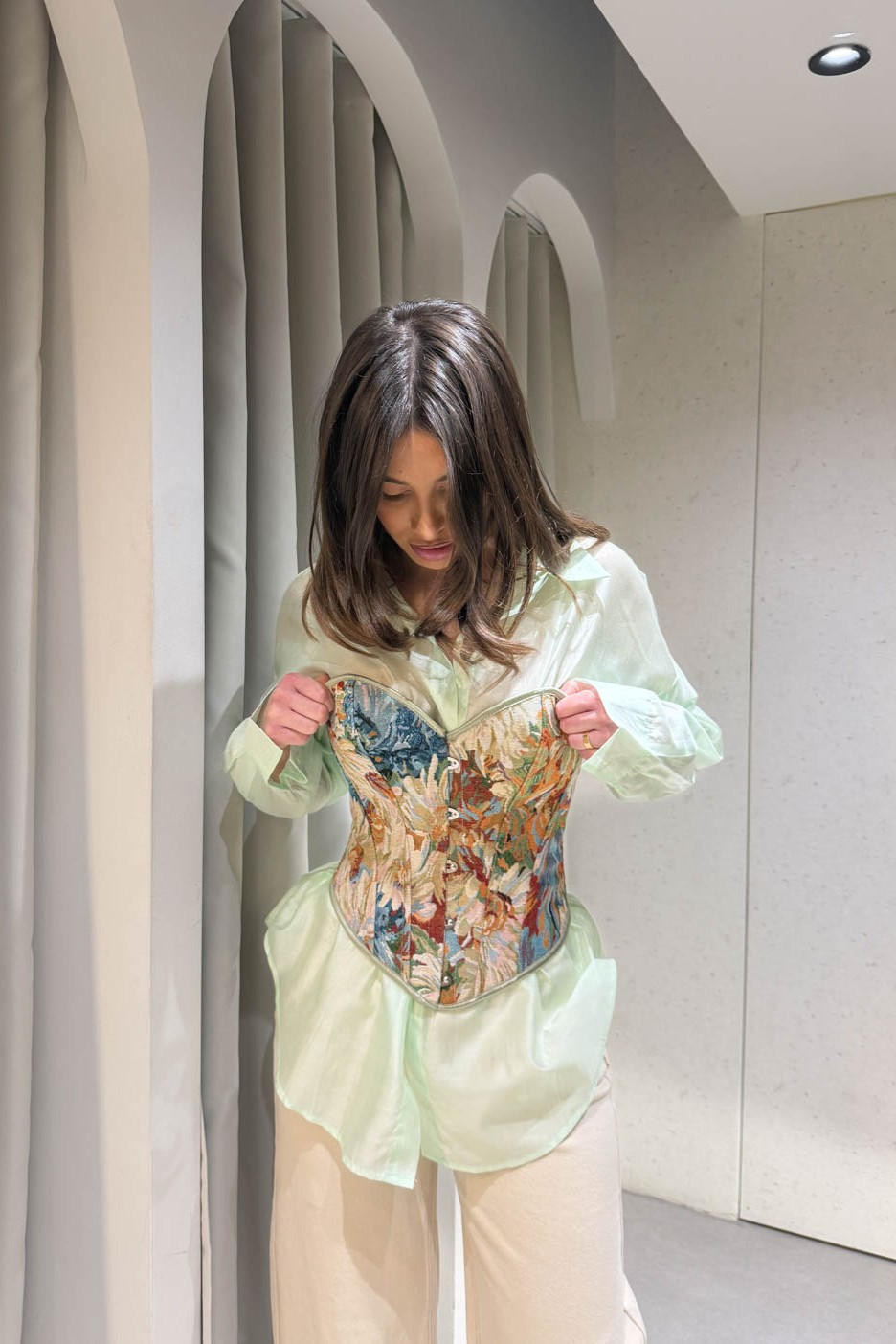 Κορσές με σχέδια διαθέτει κόπιτσες στο μπροστινό μέρος και κορδόνια στο πίσω μέρος για να σφίγγει και να σμιλεύει