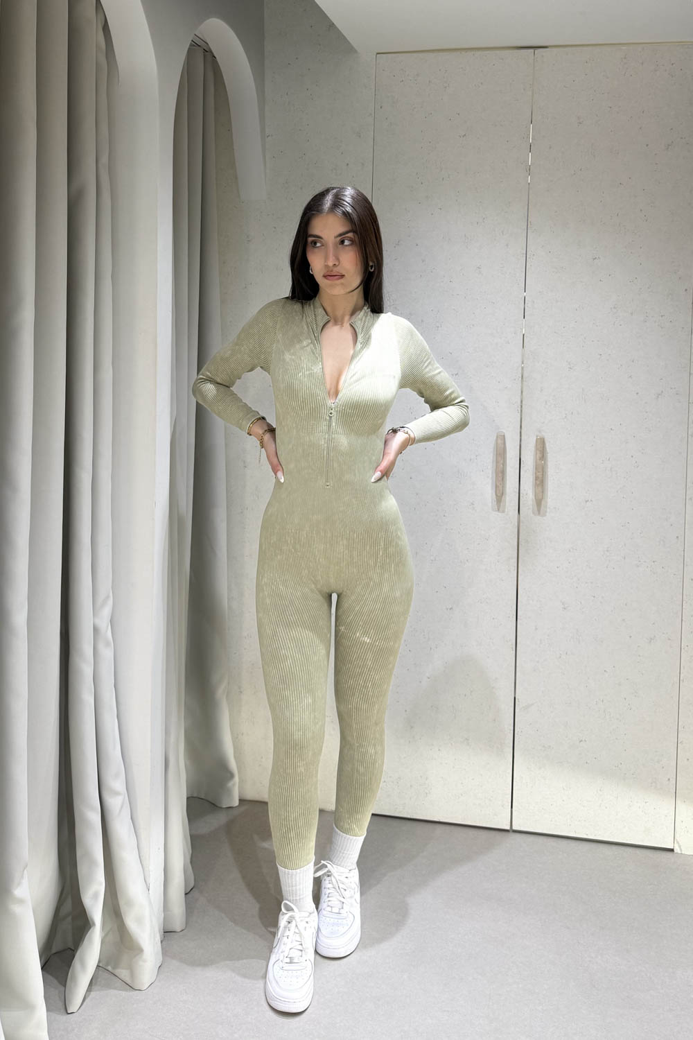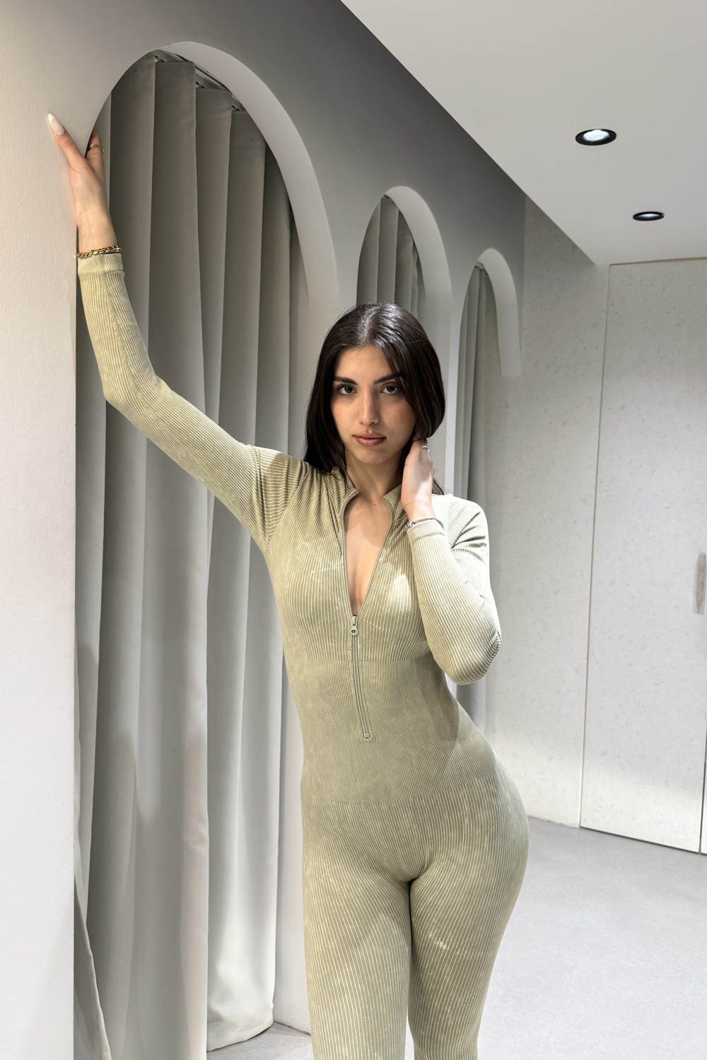 Ολόσωμη φόρμα rip έχει στενή γραμμή και φερμουάρ στο μπροστινό μέρος
