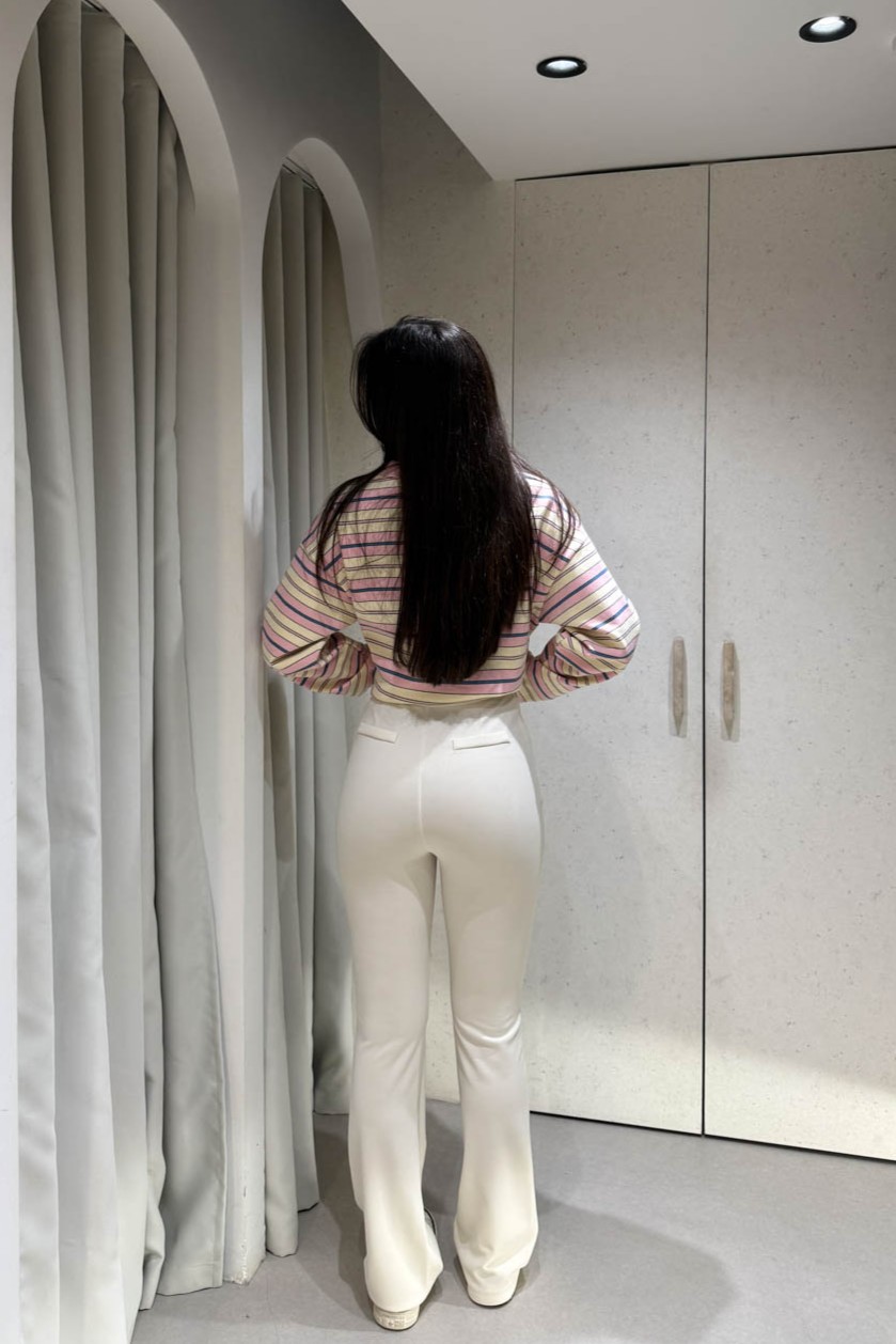 Παντελόνι υφασμάτινο με ίσια γραμμή και κάθετες ραφές. Διαθέτει ελαστικότητα και περιέχει φερμουάρ στο πλάι.