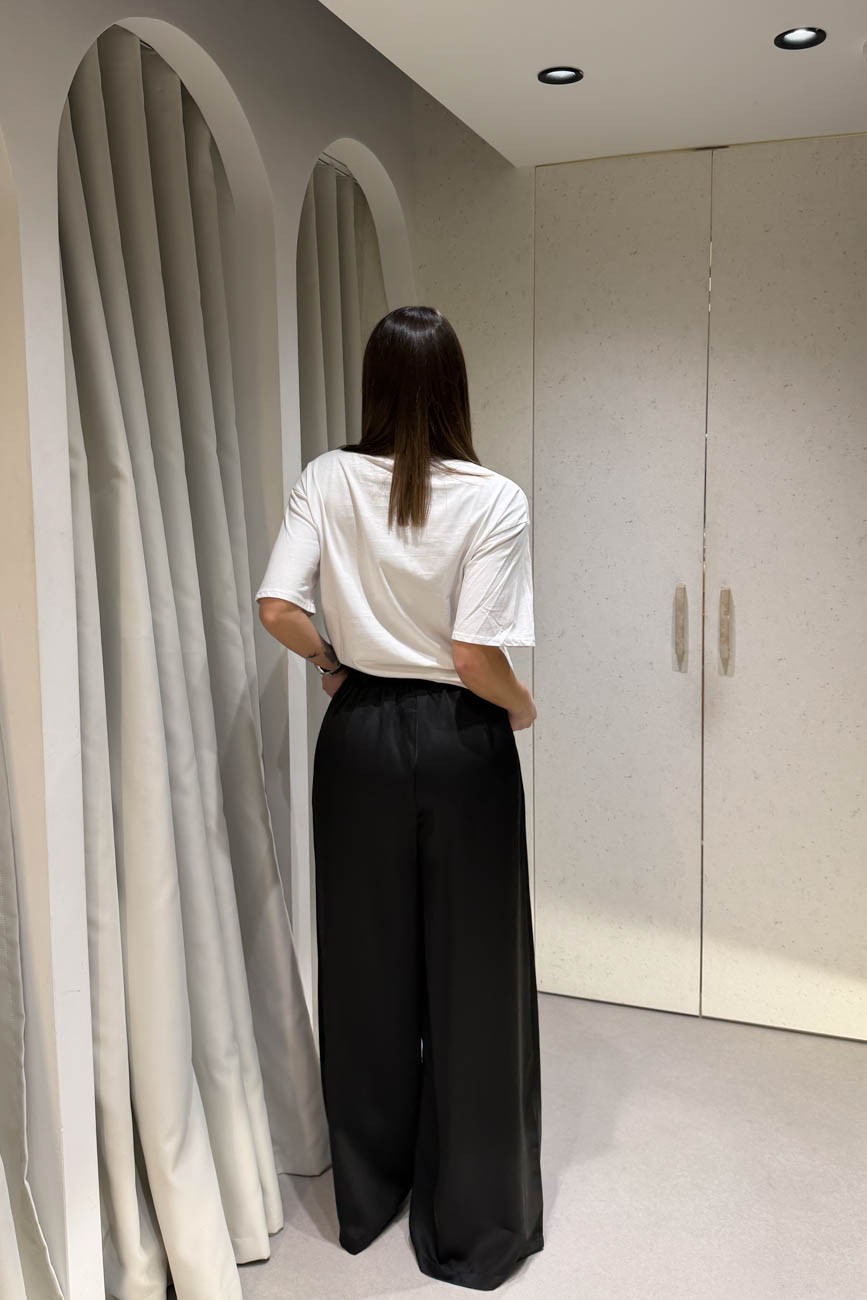 Παντελόνι σατέν ίσιο διαθέτει δύο τσέπες , θηλάκια για ζώνη και λάστιχο στην μέση