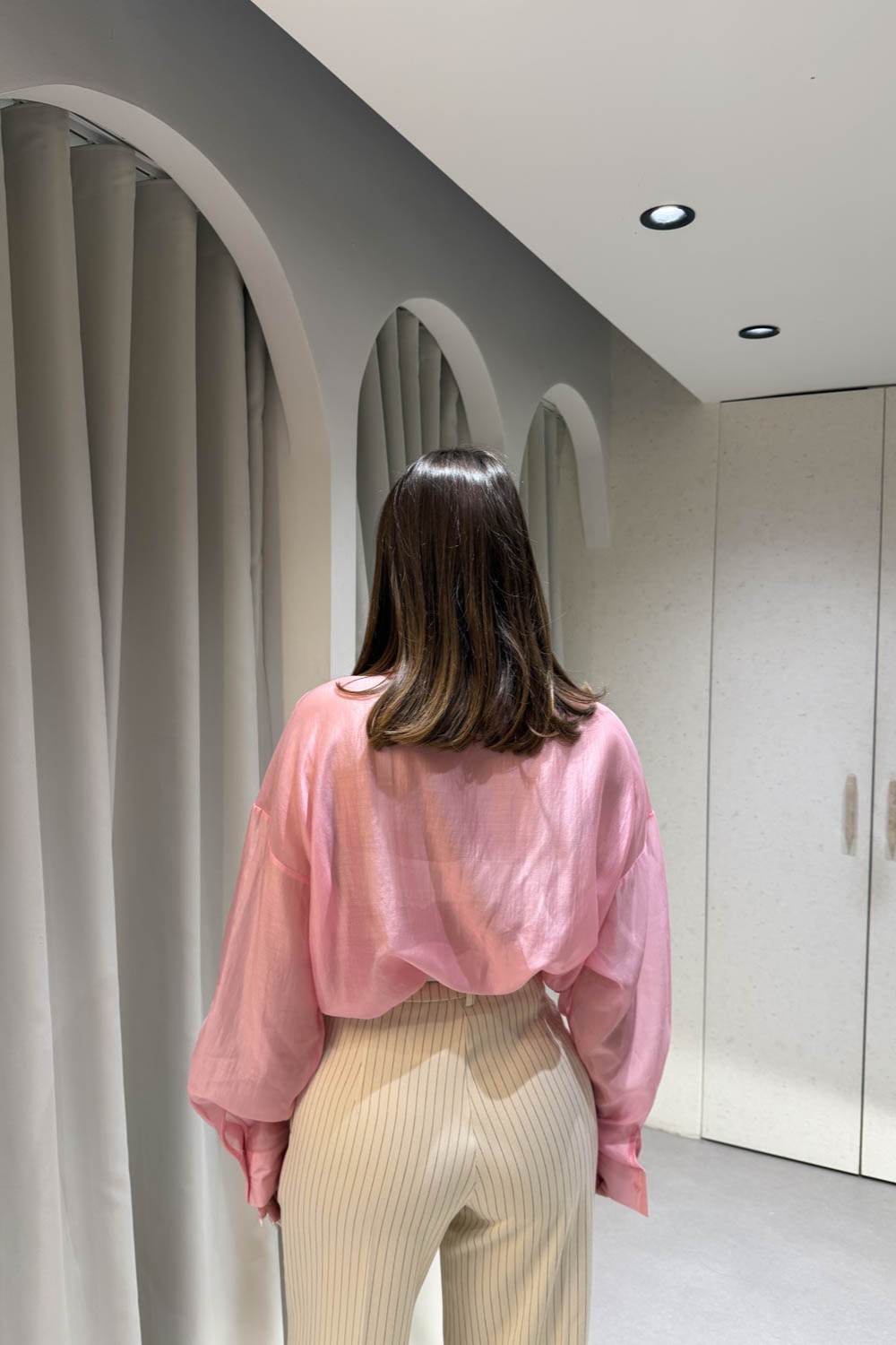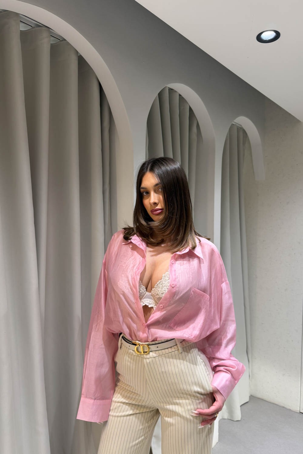 Πουκάμισο διάφανο oversized και κλείνει στο μπροσινό μέρος με κουμπιά.