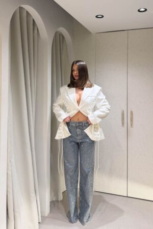 Πουκάμισο διάφανο oversized και κλείνει στο μπροσινό μέρος με κουμπιά.