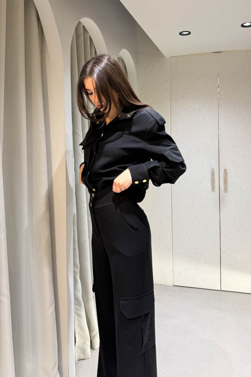 Παντελόνι ίσιο cargo μακρύ διαθέτει τσέπες και κλείνει στο μπροστινό μέρος με κουμπί
