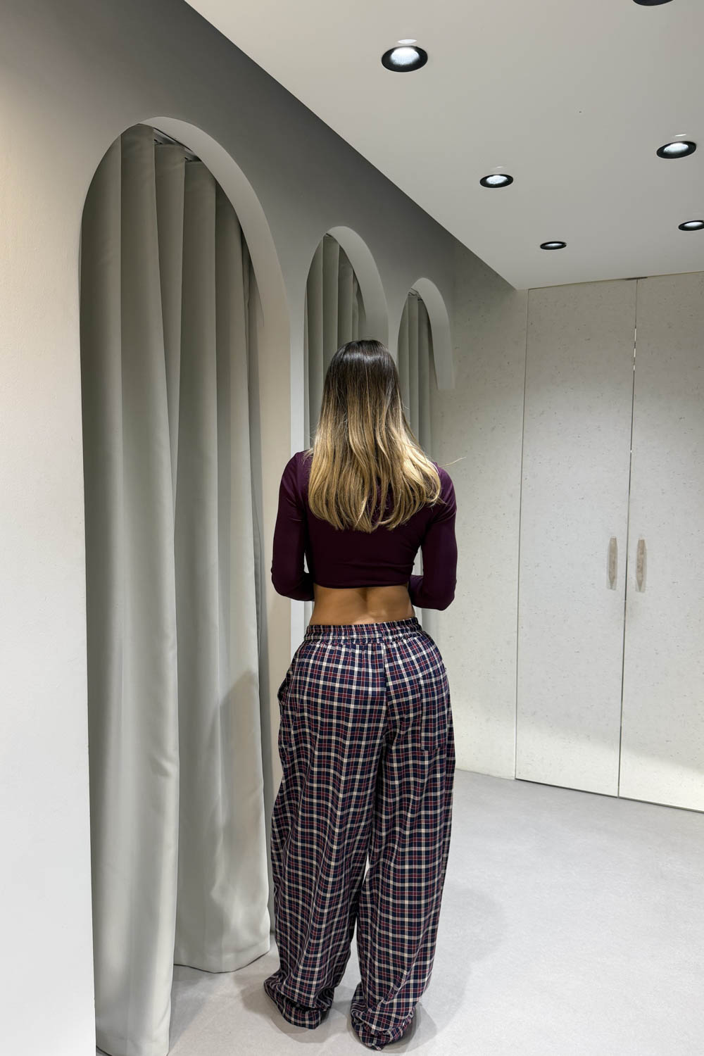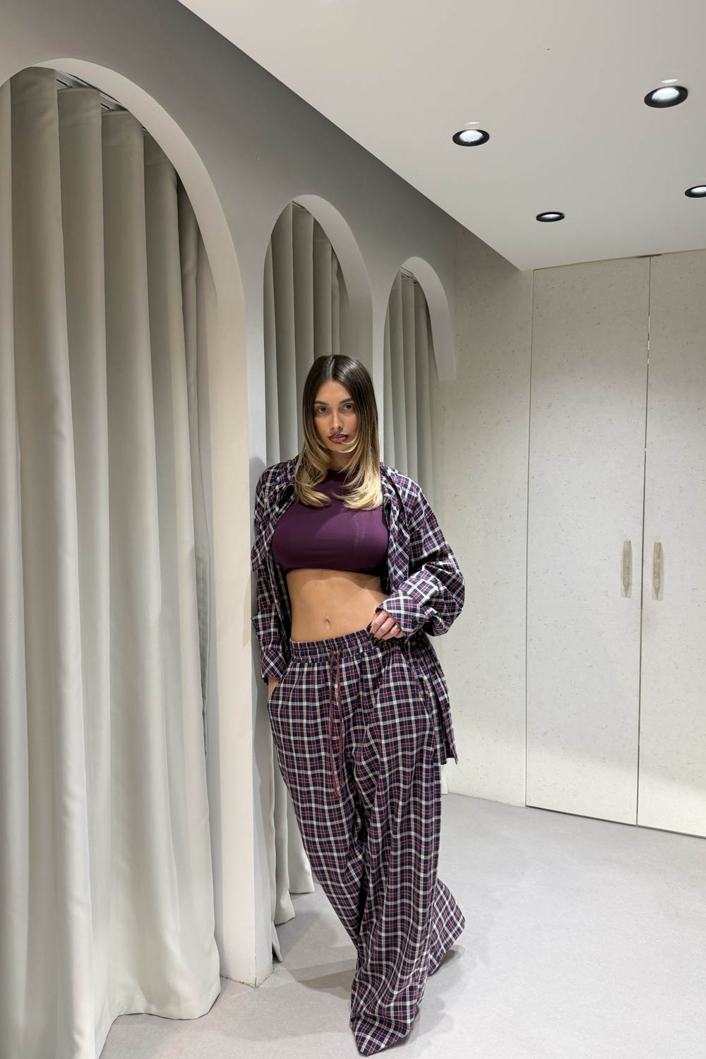 Παντελόνα καρό περιέχει δυο τσέπες και λάστιχο στην μέση με κορδόνια
