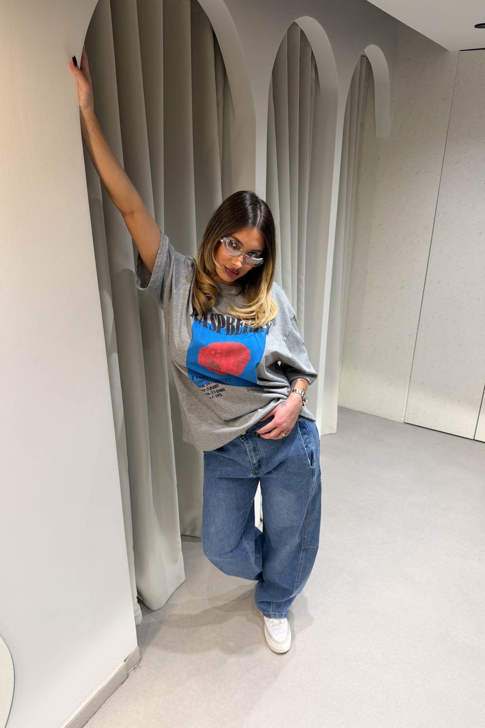Μπλούζα κοντομάνικη oversized με στάμπα στο μπροστινό μέρος