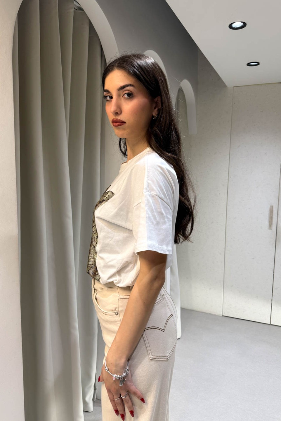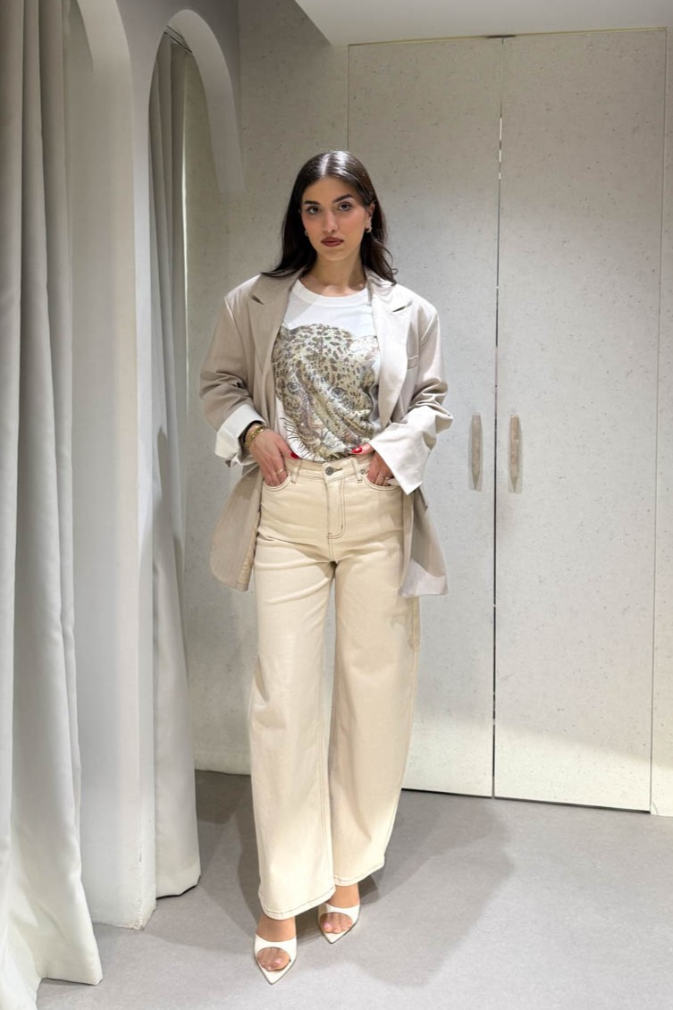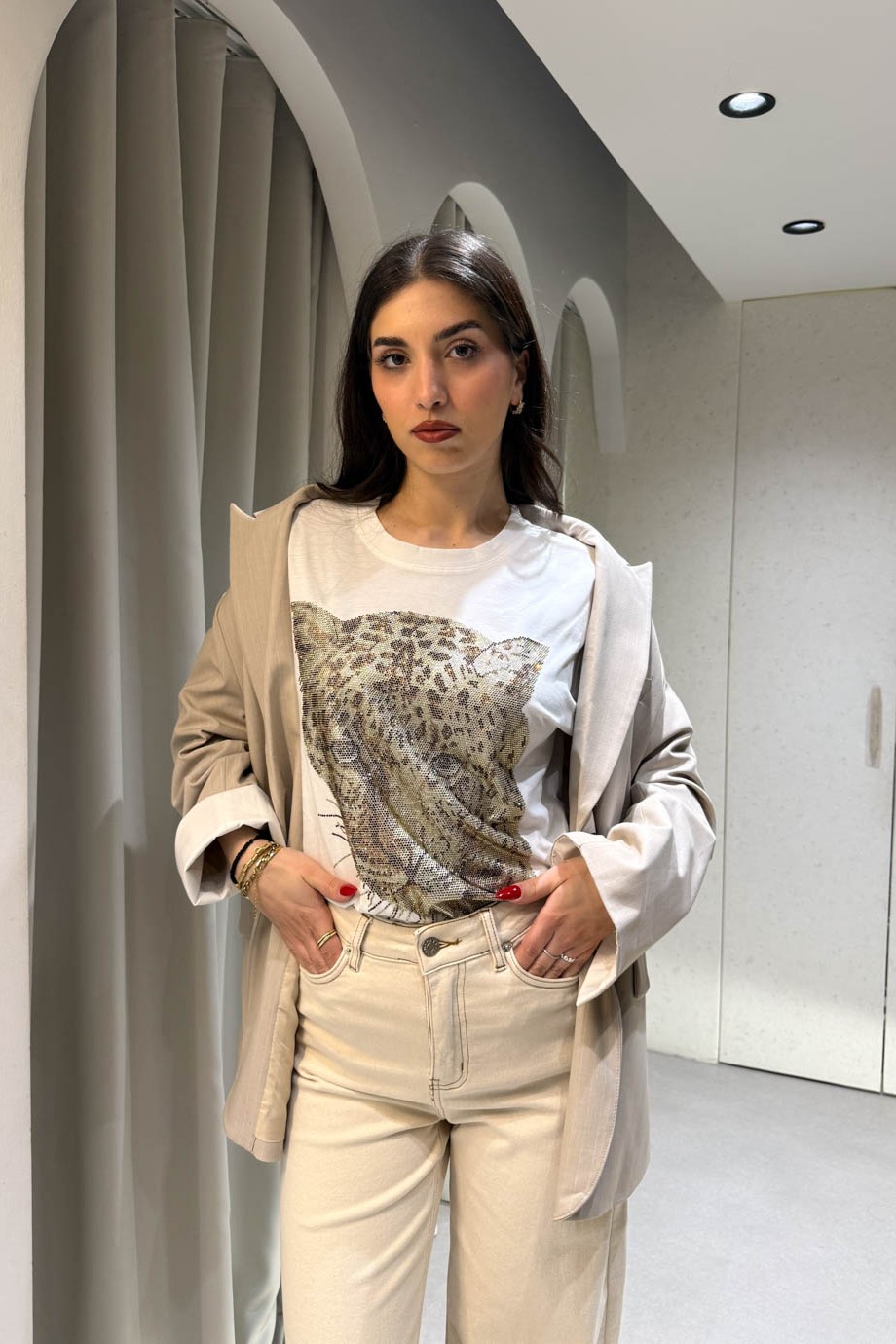 Μπλούζα κοντομάνικη με strass σε σχήμα τίγρης