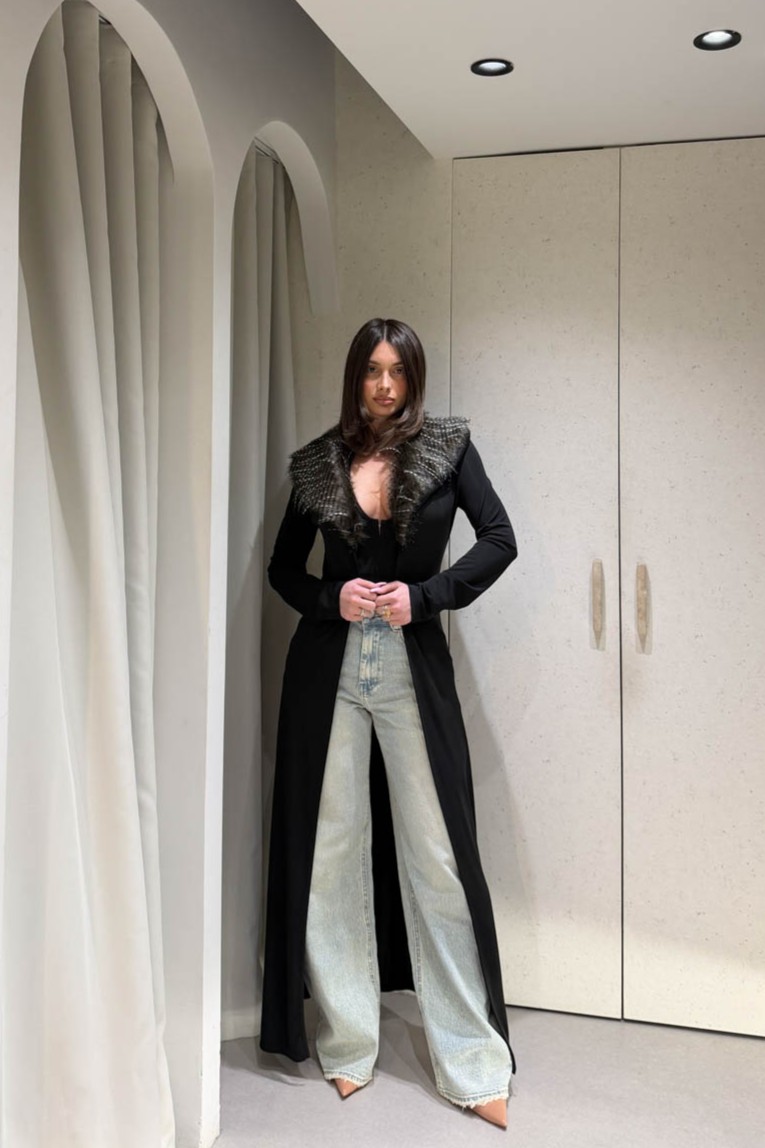 Ζακέτα Μακρυά με Γούνινο Γιακά