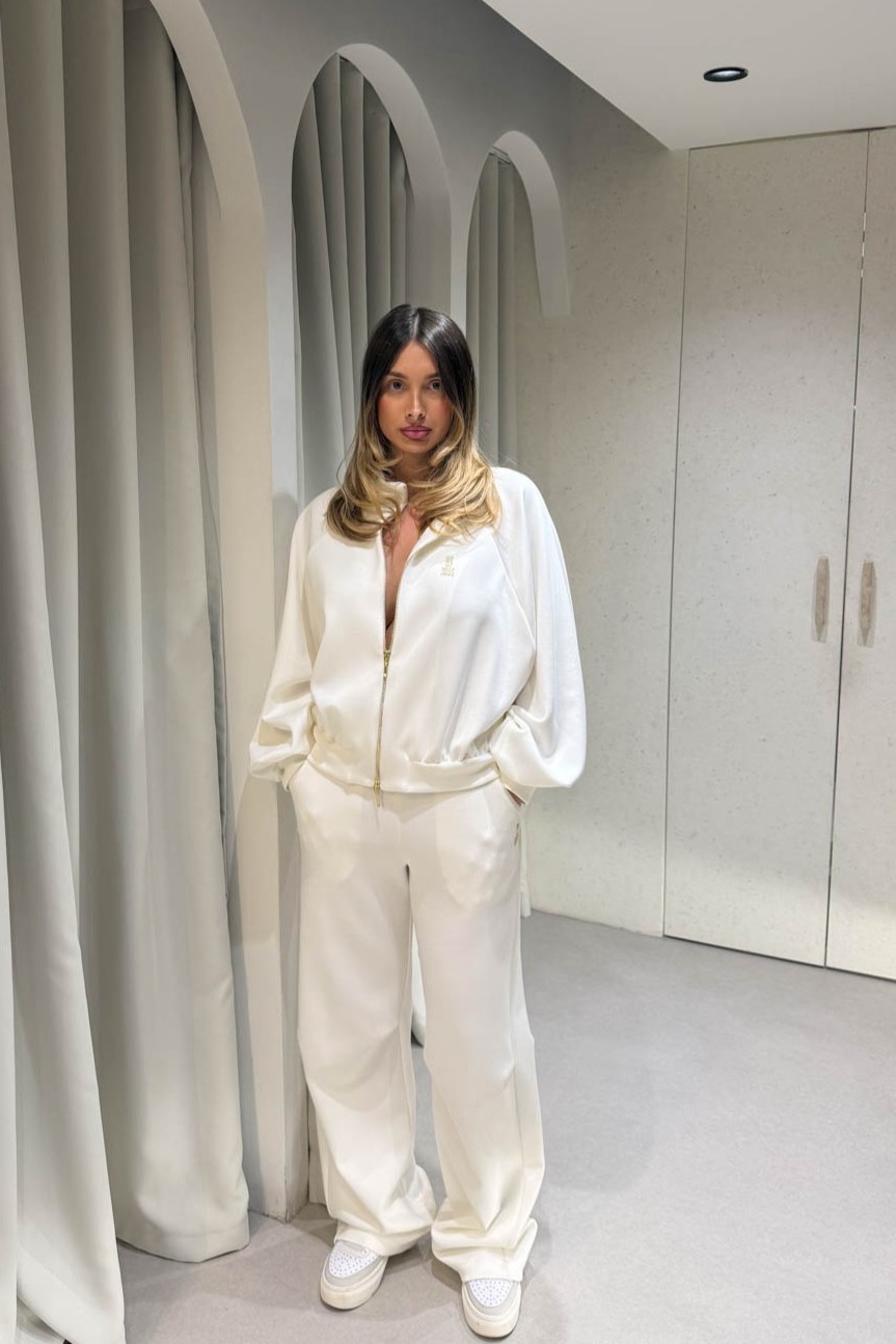 Ζακέτα με γιακά περιέχει χρυσό φερμουάρ και στην αριστερή μεριά χρυσά γράμματα